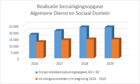 Van de oorspronkelijke bezuinigingsopgave ad € 17,95 miljoen in 2026 oplopend tot € 23,52 miljoen is inmiddels € 12,33 miljoen in 2026 oplopend tot € 14,29 miljoen in 2029 ingevuld. In een periode van circa een jaar is daarmee ruim 60% van de taakstellingen ingevuld.